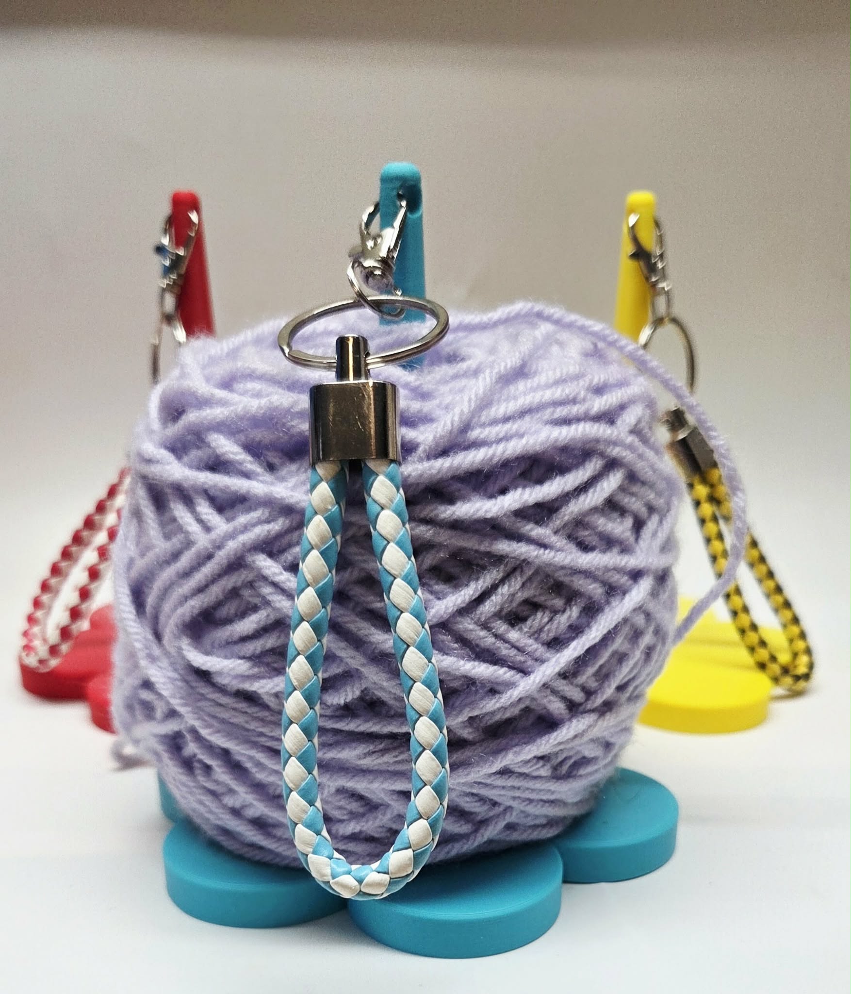 Our Yarn Holder is one piece so there's no headache of losing a piece or pieces not fitting together. You can hang it from your wrist for on the go creating or hang it from your bag, a hook or from something else while you sit down to work.